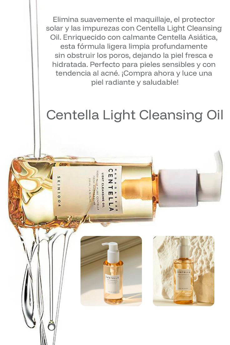Inspirado en la pureza de Madagascar, el SKIN1004 Centella Light Cleansing Oil combina extracto de Centella Asiática, aceites vegetales purificantes y tecnología de emulsión ligera que limpia eficazmente sin alterar el equilibrio natural de la piel.